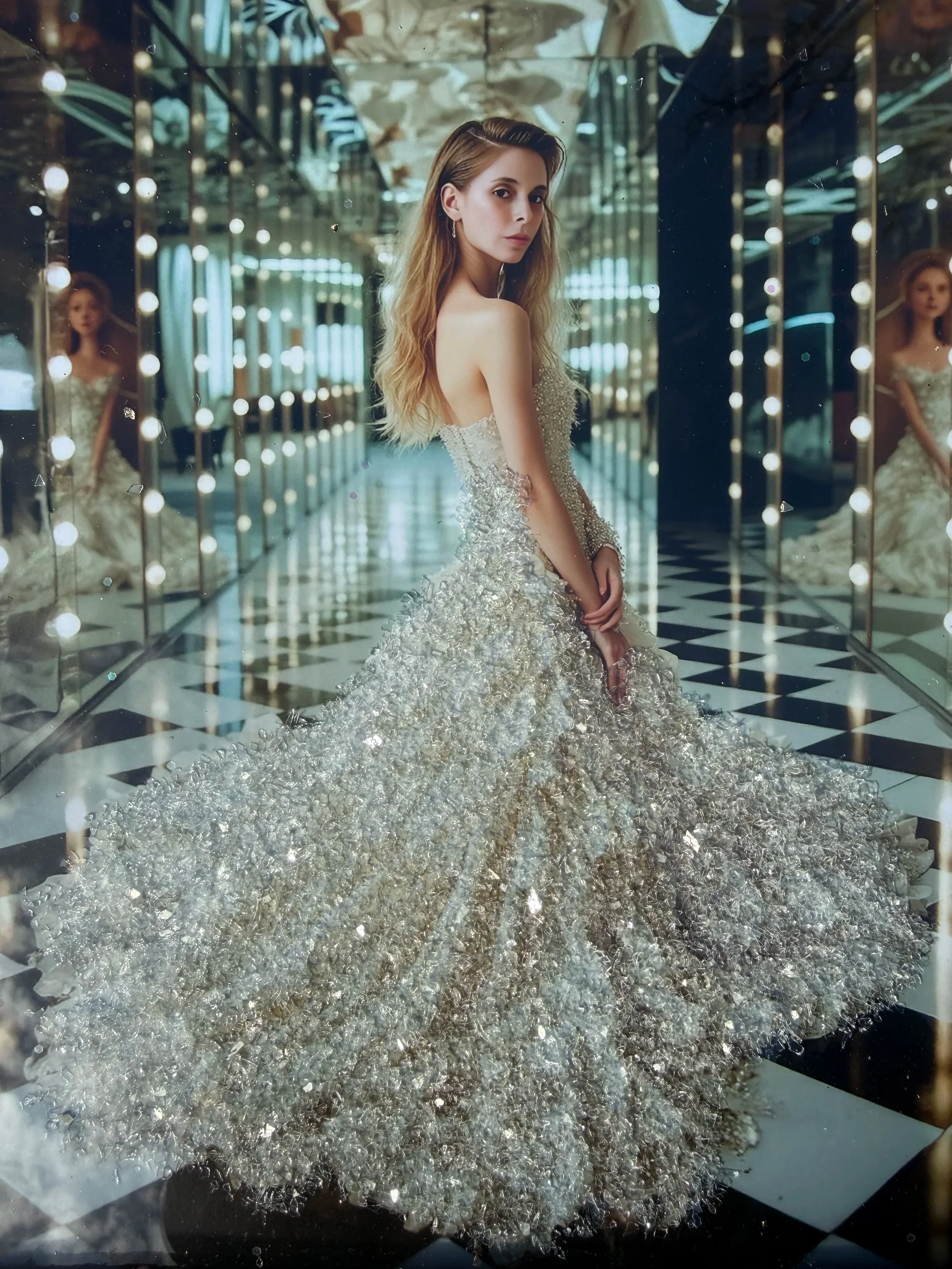 A sparkling crystal finish is applied selectively to clothing or fashion elements, creating a subtle, elegant shimmer while keeping the portrait natural and refined.Full Glitter Crystal Portrait